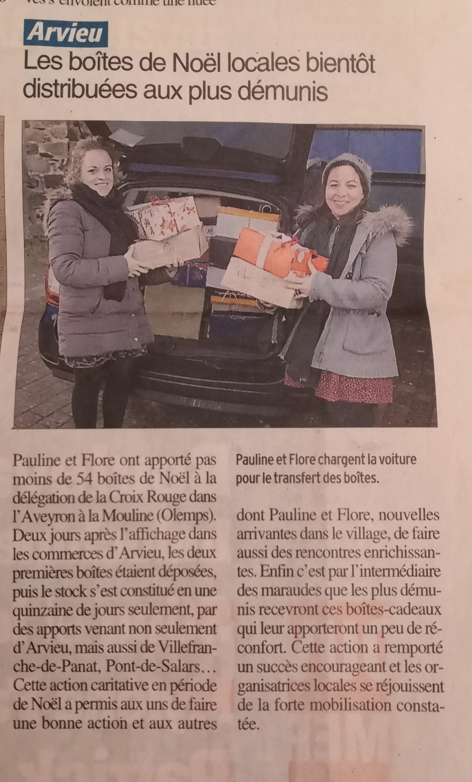 J’ai eu les larmes aux yeux quand dès le lundi une maman est venue m’apporter deux boîtes, c’était si rapide et ça y est, l’idée prenait. C’est très touchant de voir des personnes répondre à un appel. Peut-être par peur d’être déçue, j’ai évalué la collecte à 25 boîtes. En fait, j’étais loin du compte. Grâce à notre correspondante de presse locale, un article est paru le 7 décembre faisant ainsi rayonner l’initiative au-delà de notre seul village. Certains ont même fait 30 kilomètres pour nous apporter des boîtes. En tout, Flore et moi avons récolté 54 boîtes, un chiffre que nous n’aurions pas osé imaginé possible. 54 personnes de la rue ont eu une boîte contenant des présents et une carte écrite du fond du cœur.