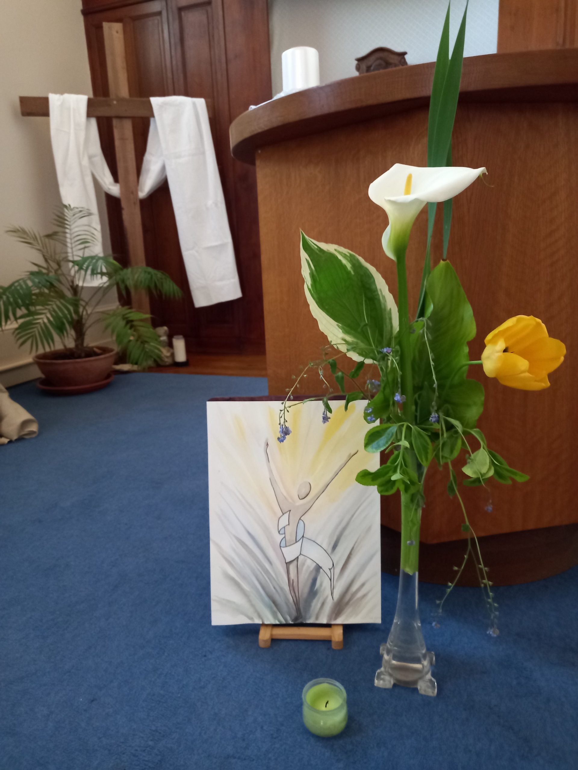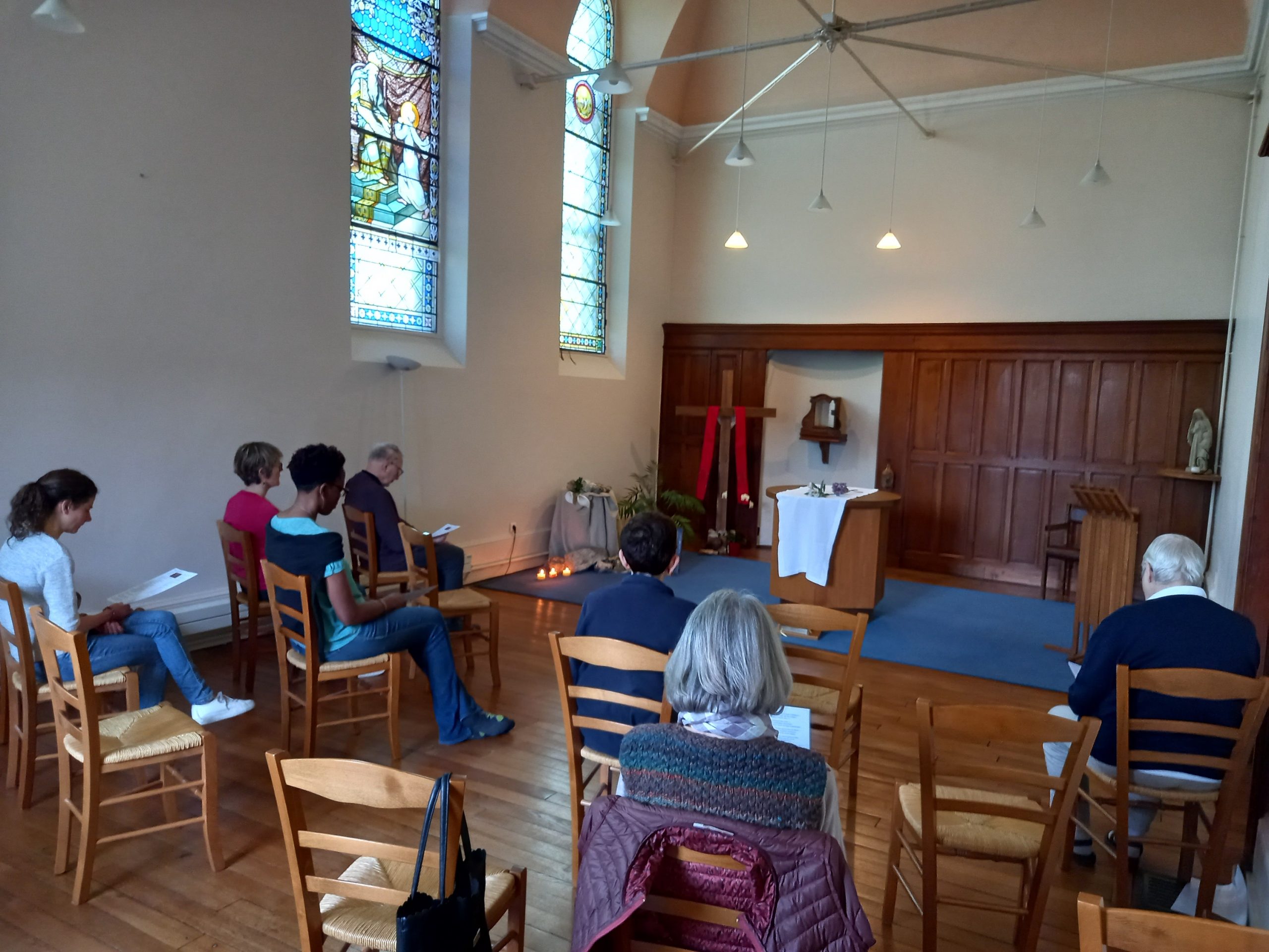 J’ai beaucoup goûté la beauté qui nous était offerte : beauté du paysage environnant, du jardin, des décors de la chapelle en lien avec le moment liturgique, des feuilles pour la prière avec à chaque fois des illustrations, et des temps de présentation de points, le plus souvent avec de la musique.
