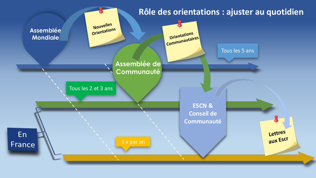 L’Assemblée de Communauté est constituée d’environ 120 personnes représentatives des différentes missions et Communautés régionales en France. Elle se réunit tous les deux ou trois ans. L’Assemblée de Communauté relit le parcours réalisé depuis 2 à 3 ans et avec l’éclairage des orientations mondiales, définit les orientations nationales.